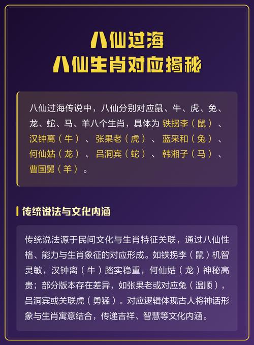 八仙,即铁拐李、汉钟离、张果老、何仙姑、蓝采和、吕洞宾、韩湘子、曹国舅、他们身份各异,根骨不同,恰如十二生肖秉性迥然、他们所持的法器,并非凡物,而是自身道法与心性的外化、这正是解读其与生肖关联的钥匙。