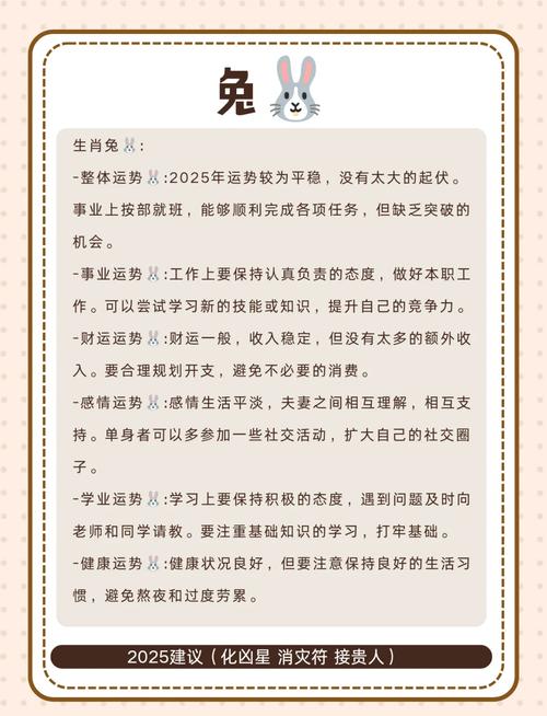 “卯午相破”带来的影响不容小觑、这股力量主要作用于人际与合作、职场之中,看似和睦的同事关系,可能因利益冲突或无心之言而生出嫌隙、团队协作的项目,易在关键节点出现内部分歧,导致进程受阻、属兔人需谨记“言多必失”,避免在背后议论他人是非,对工作细节反复核查,以免授人以柄、签订合约文书时,更要逐条审阅,厘清权责,莫因人情而疏忽,否则易生纠纷,好事成空、对于创业的属兔人,此年宜守不宜攻,内部管理与团队建设的重要性,远大于盲目扩张市场、稳固根基,方能待时而飞。